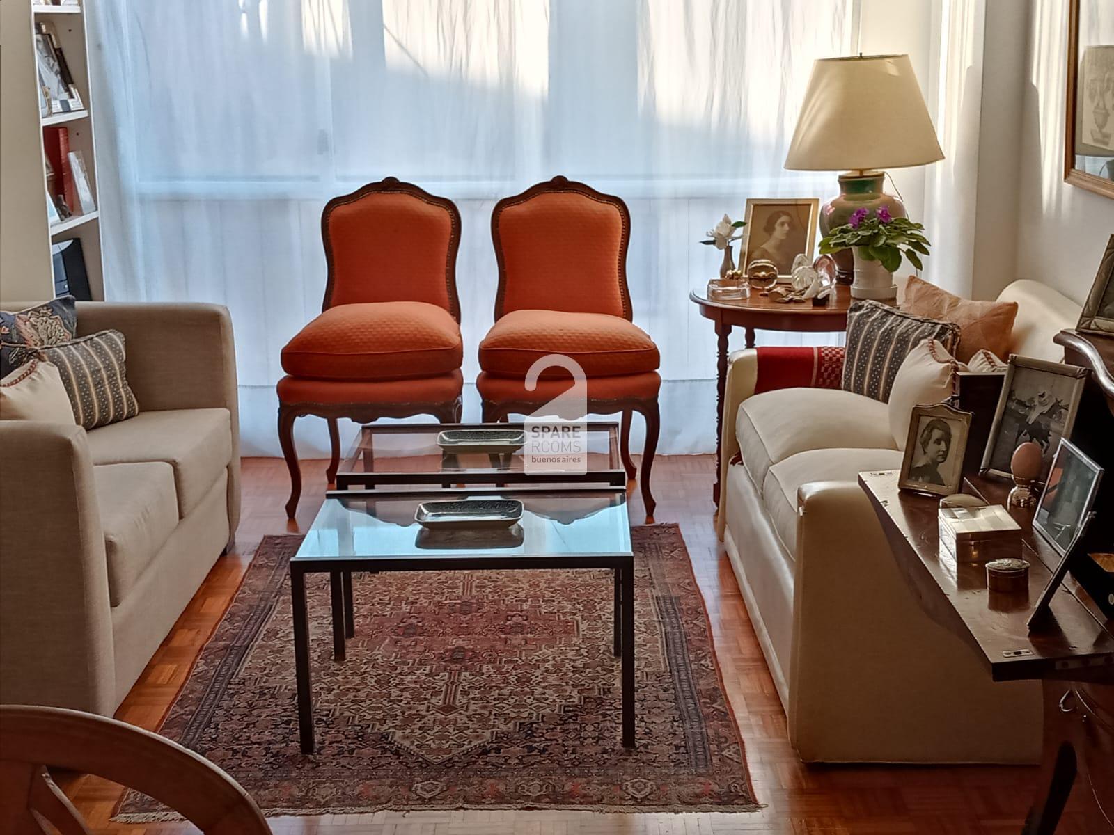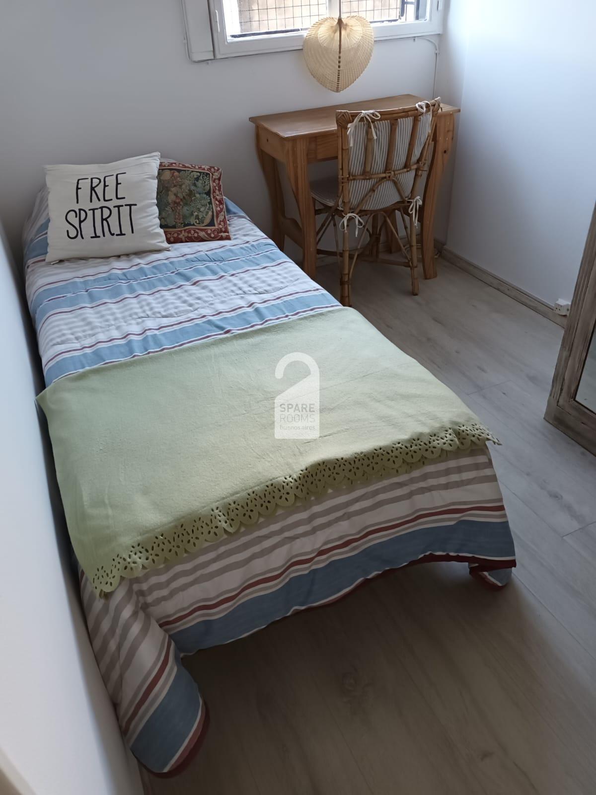 Luminosa y acojedora habitación individual con baño privado para alquilar en un departamento en el barrio de Recoleta.