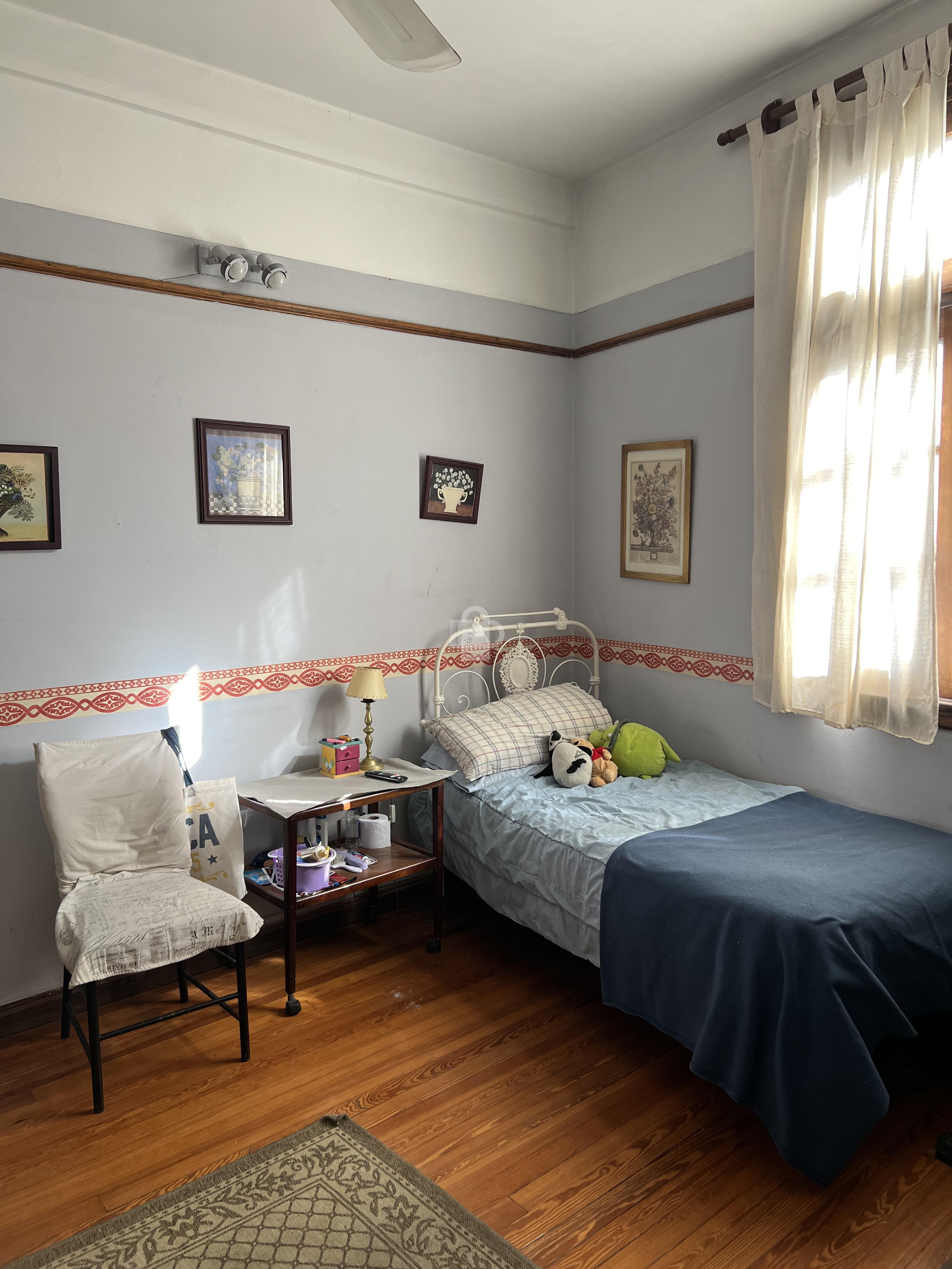 La habitación es muy luminosa y tiene un ventilador para que estés fresco en los días calurosos de verano, y calefacción en los días de frío invierno. Cuenta con buen lugar de guardado y escritorio. El baño se comparte con la anfitriona - que lo usa solo para ducharse.