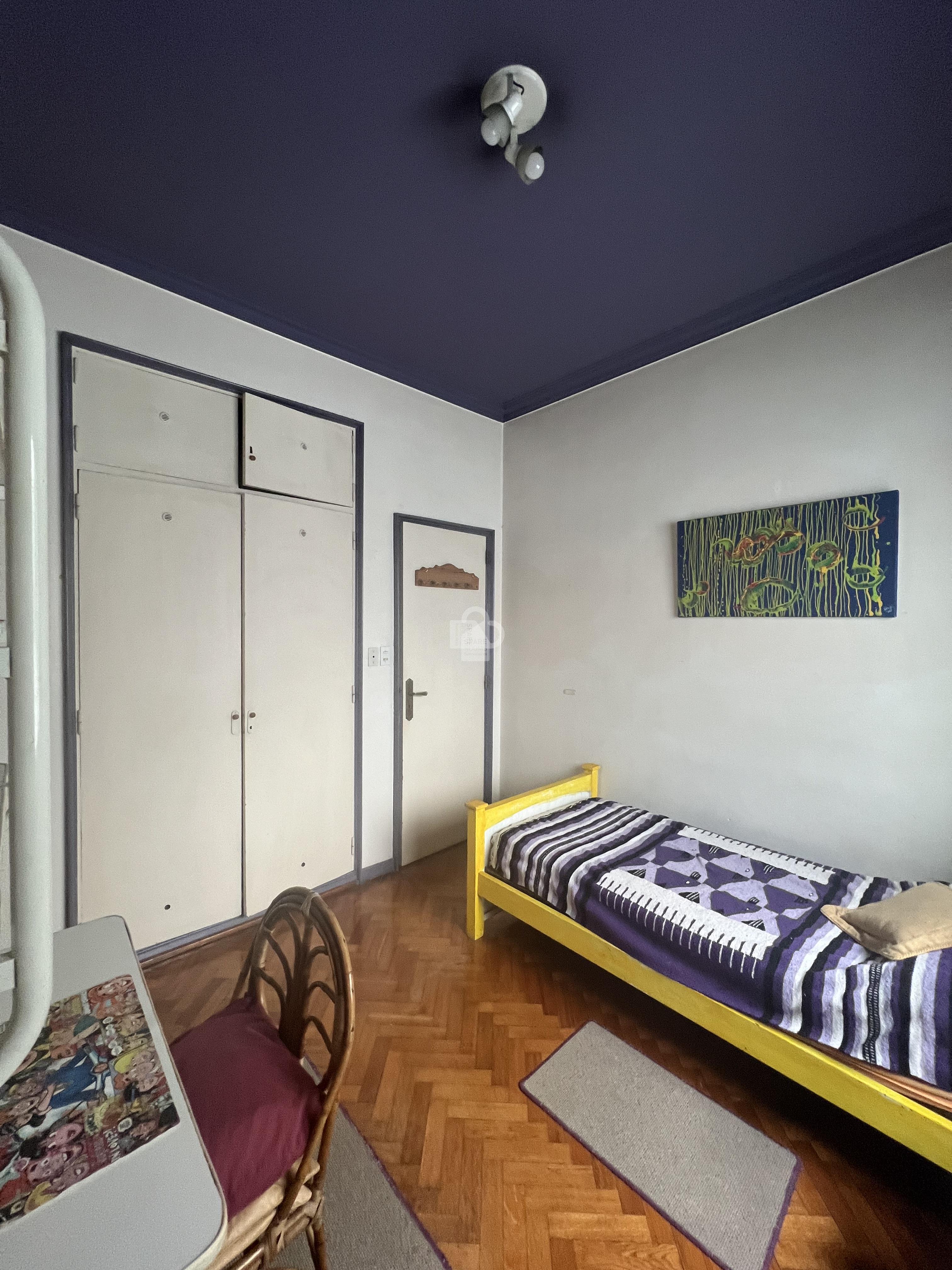 La habitación tiene 1 cama single una mesa de luz con su velador, un placard espacioso y escritorio.