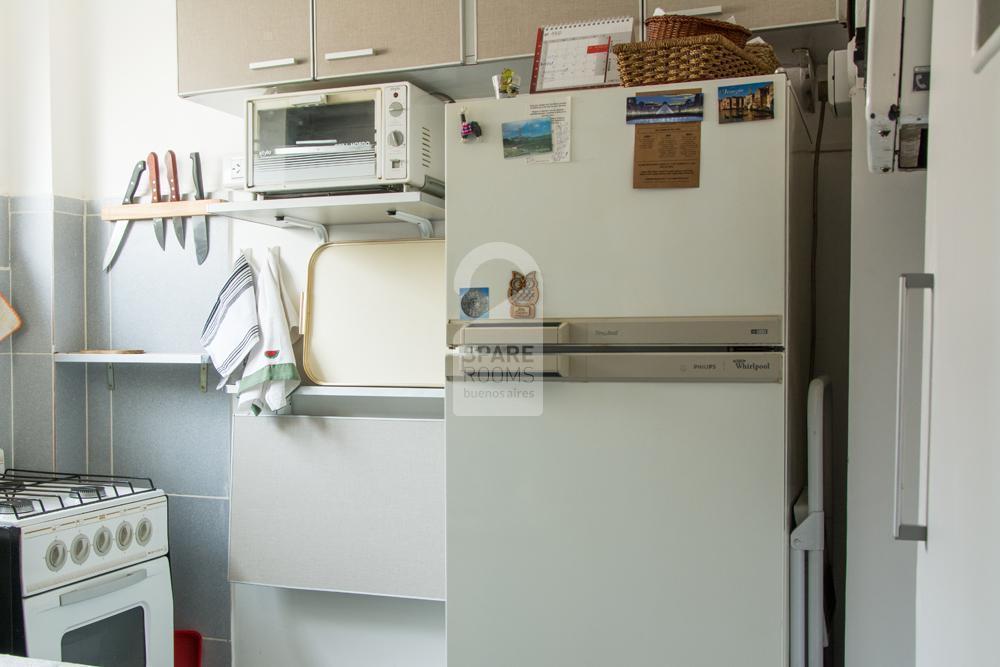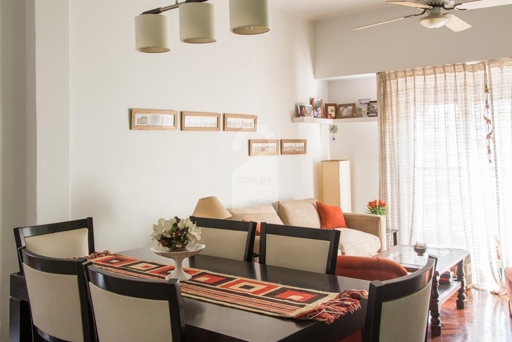Single sunny room with a shared bathroom to rent in apartment in the 7th floor apartment in Las Cañitas neighborhood. Just three blocks from l Solar de la Abadía shopping.
