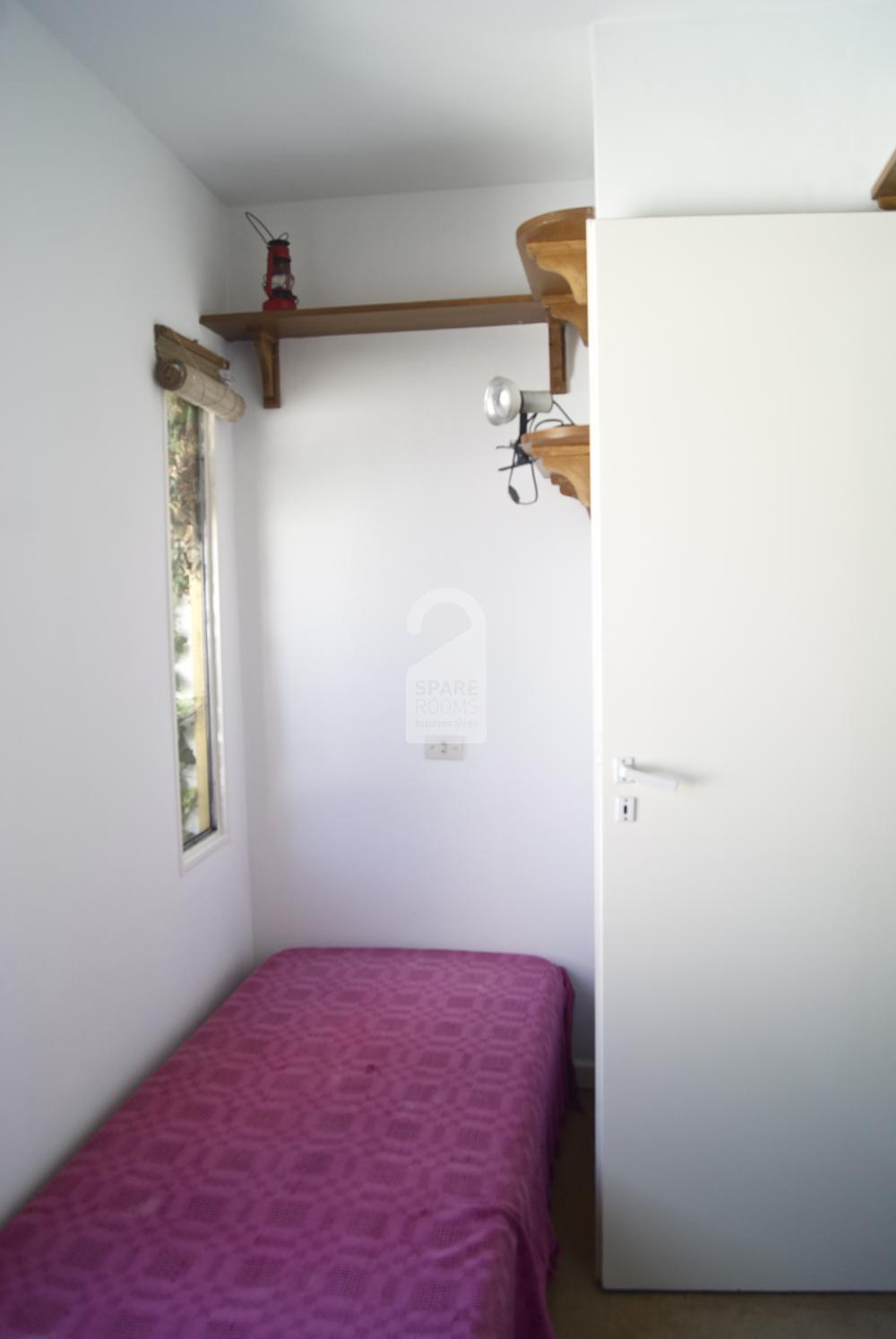 Warm room with a single bed, for one person, with everything you need: good mattress, bedside table, storage space and desk.