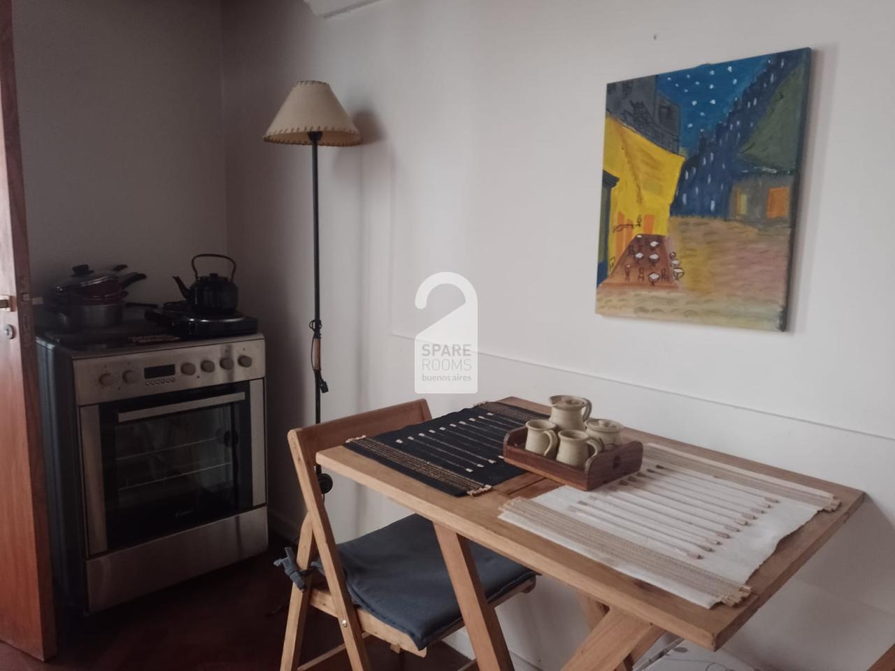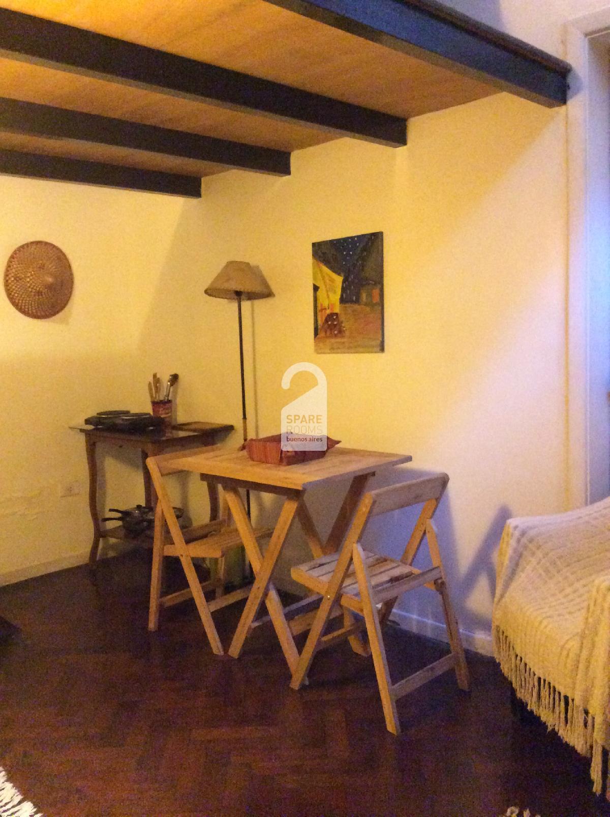 The room is located in a typical old PH of San Telmo, quiet, bright and very peaceful. It has independent access, with a mezzanine where the bed is separated from the private living area. It has a door to the inner courtyard and a small ventilation window at the top of the room that allows natural light to enter.