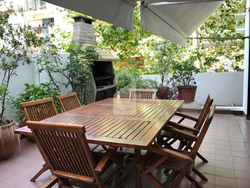 There is a charming classic living room with many sofas, a TV, and a coffee table, that gives access to a beautiful and large terrace with a "parrilla".