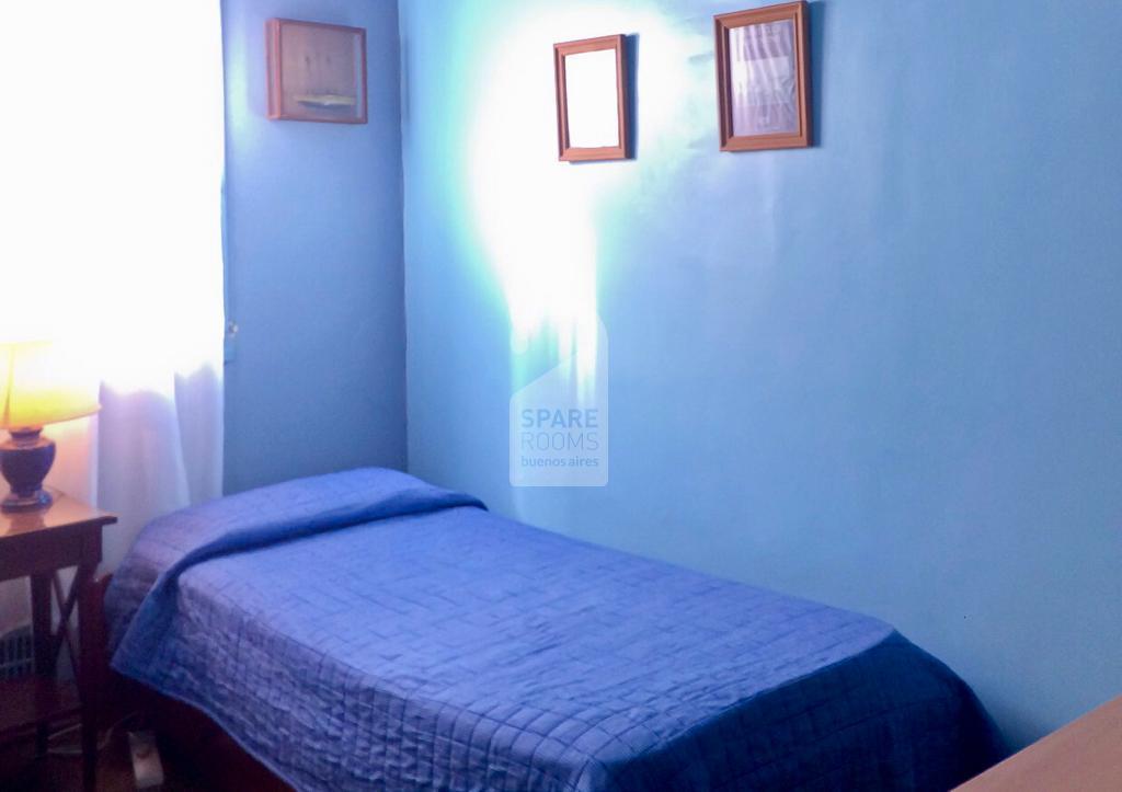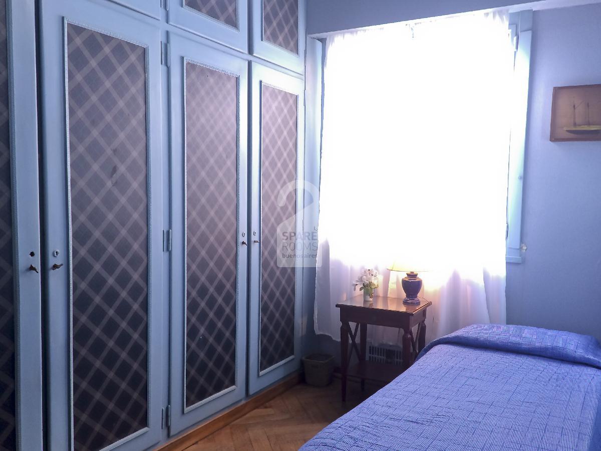 The single bedroom is very comfortable and bright until noon and is located in the internal part of the building. It has a single bed, a desk and its chair. There are very large closets with shelves and drawers.