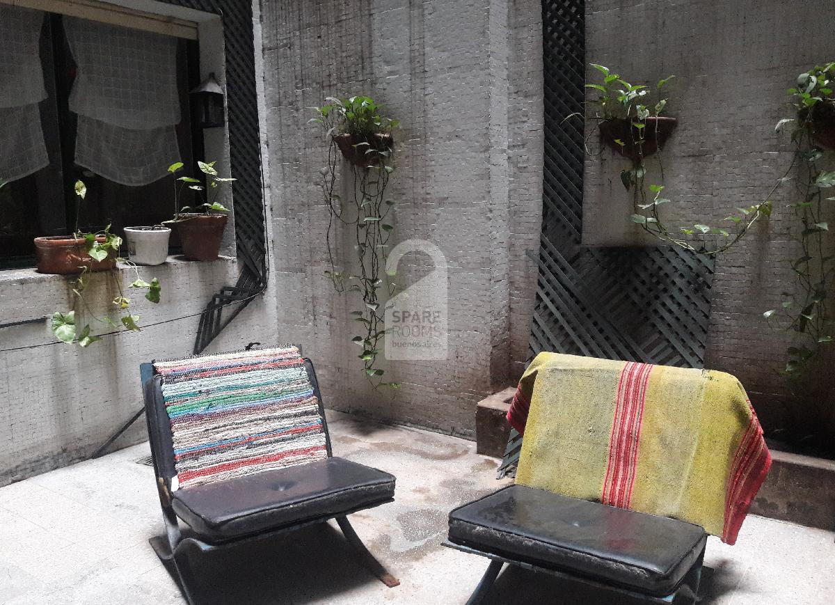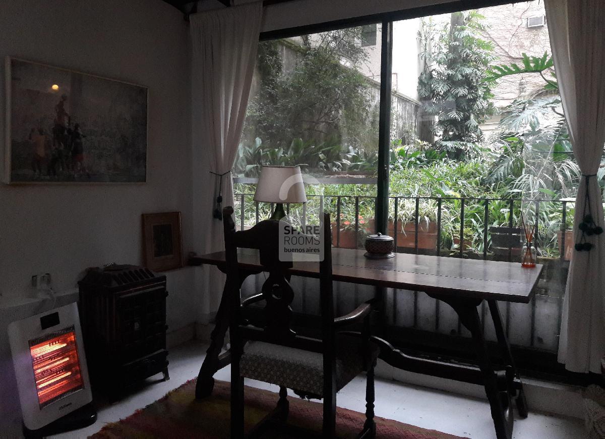 Esta habitación single en el corazón de Recoleta es muy luminosa con ventanales que dan a un jardín lleno de plantas de un lado, y del otro tiene salida al patio del departamento! Es muy tranquila y privada, ideal para estudiar o relajarse.