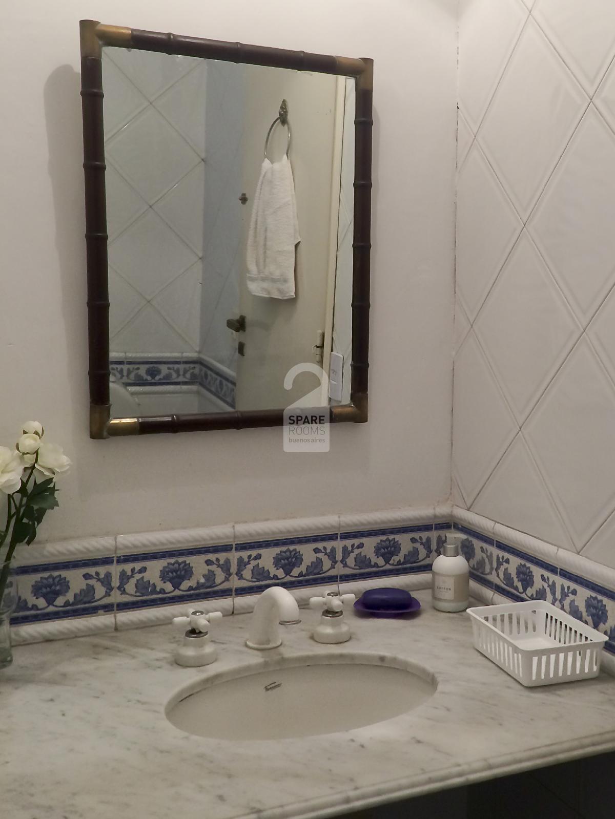 Frente a esta habitación, podés encontrar el baño para compartir eventualmente con otro huésped en la casa. Es completo luminoso y con ventilación, posee bañadera y ducha.