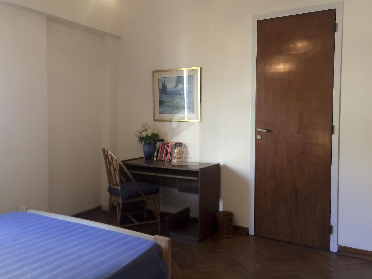 La habitación da al frente a la Av. Callao y hay una gran ventana que le da mucha luz natural al la pieza.
