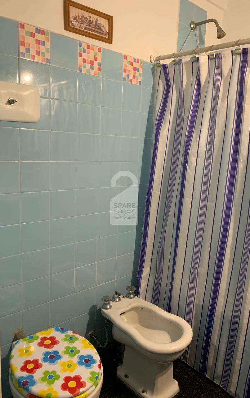 El baño completo compartido tiene bañadera, ducha, W.C y lava manos y se comparte con la anfitriona.