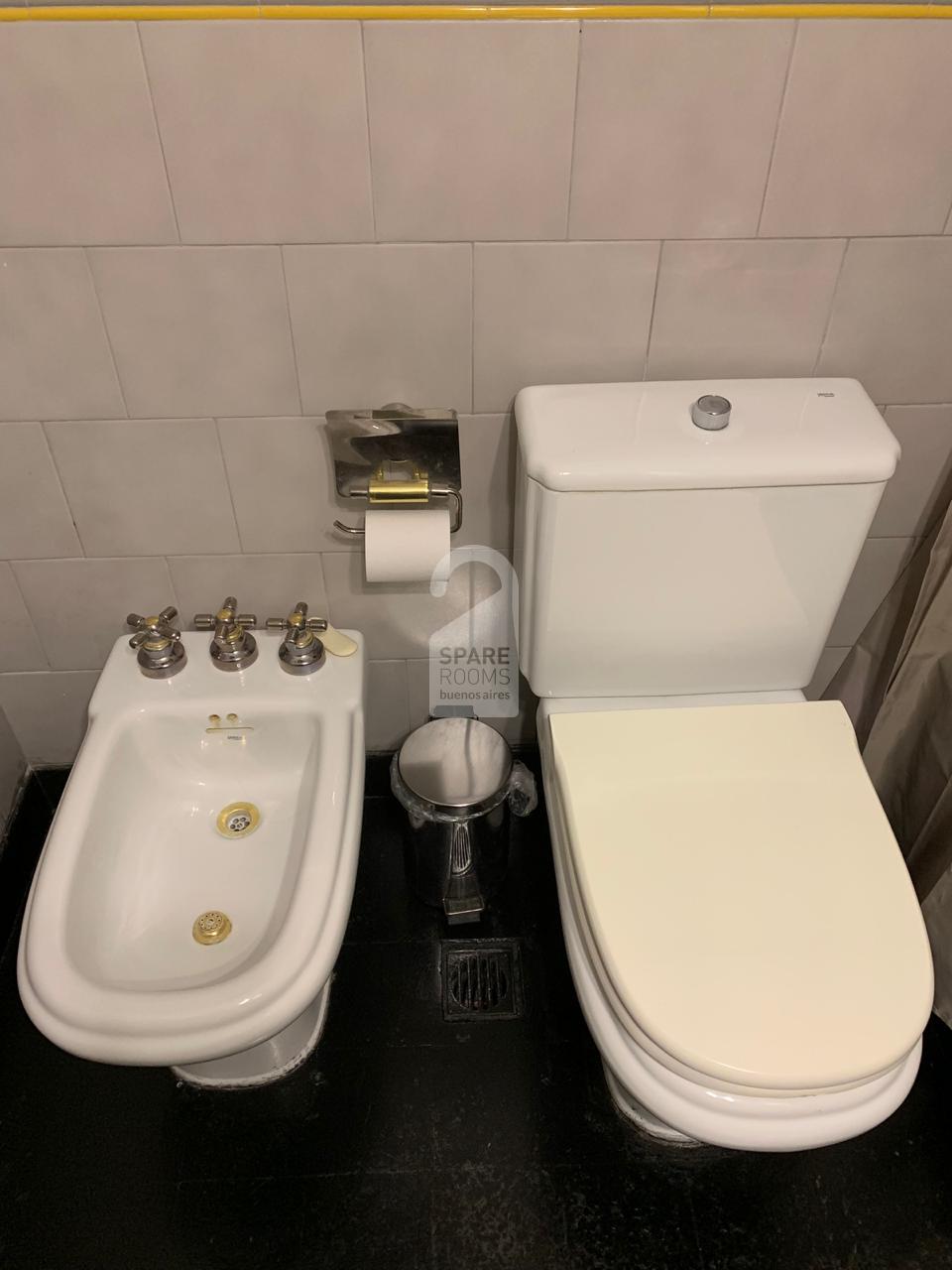 El baño es compartido y tiene lava-manos, WC, bañadera y ducha.