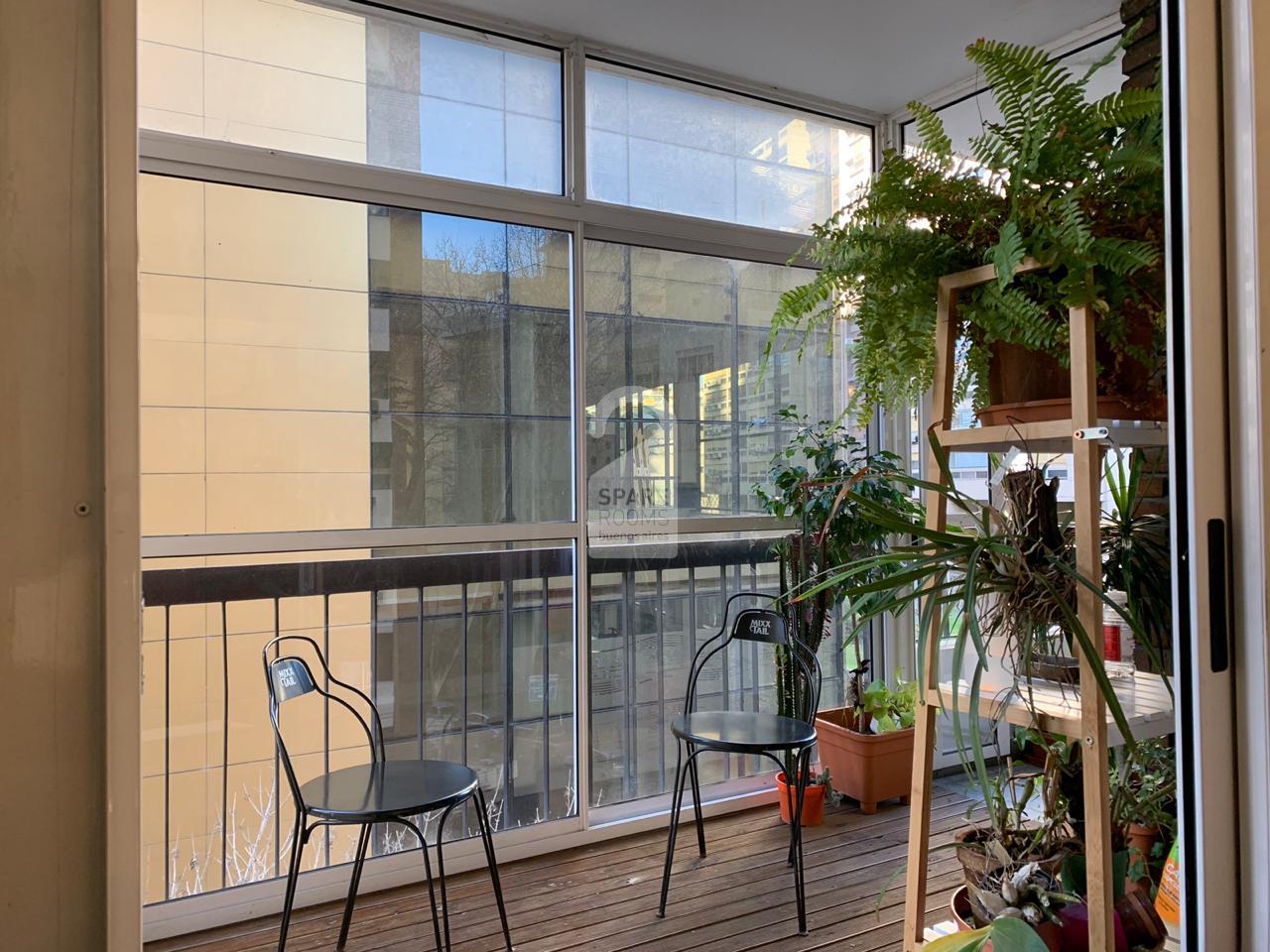 El living es muy amplio y tiene dos sillones muy confortables para poder leer o relajarse. Da a un balcón cerrado con sillas y plantas.