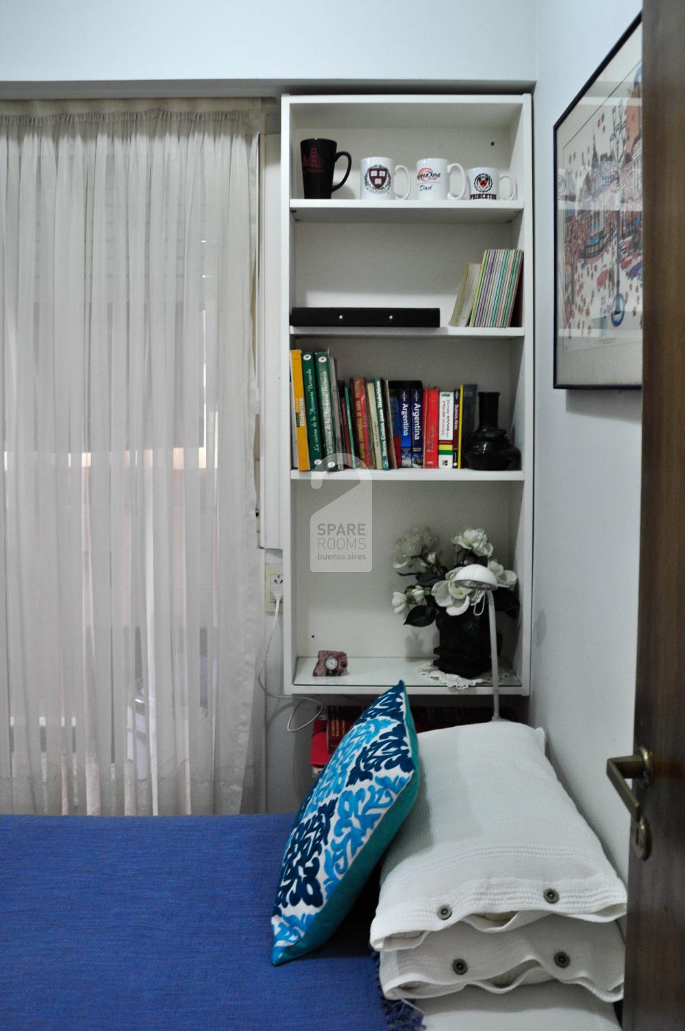 La habitación, recientemente remodelada, tiene una cama single, una mesa de luz con su velador, un amplio placard, una biblioteca y un escritorio ideal para trabajar o estudiar.