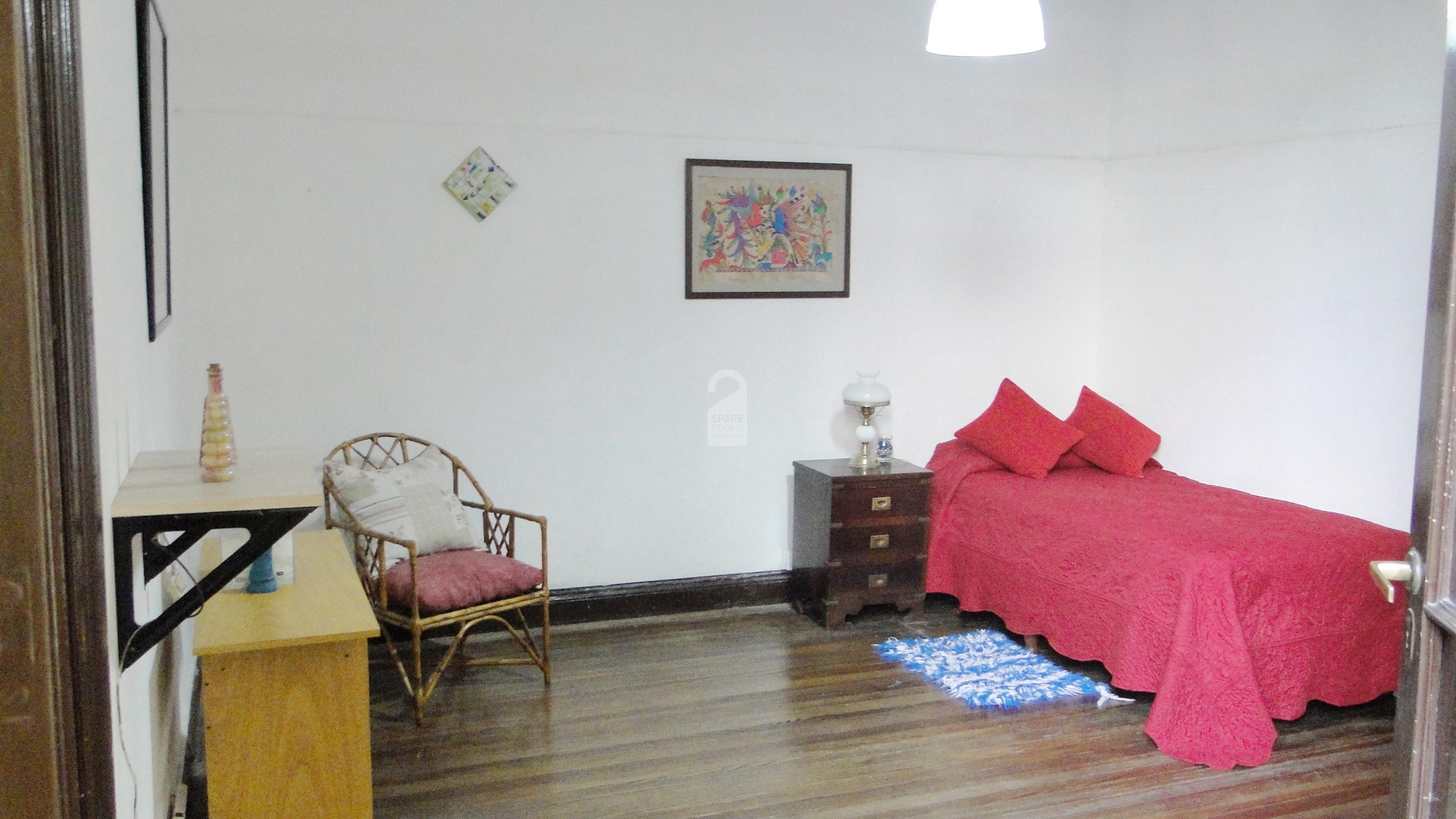 Una muy amplia habitación individual en una tradicional casa familiar, amplia y silenciosa, en un barrio tranquilo y residencial, a 15 cuadras del hermoso Parque Lezama en San Telmo, y a 6 cuadras del famoso Caminito de La Boca.