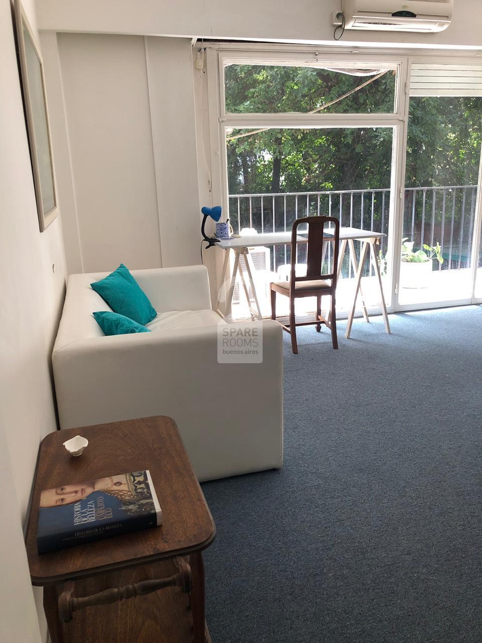 La habitación es amplia y luminosa, con una mini kitchenette, sillón, entrada independiente y balcón, a solo 3 cuadras del tren línea Mitre (viaducto) y a 4 cuadras del subte línea D, en el corazón de Belgrano.