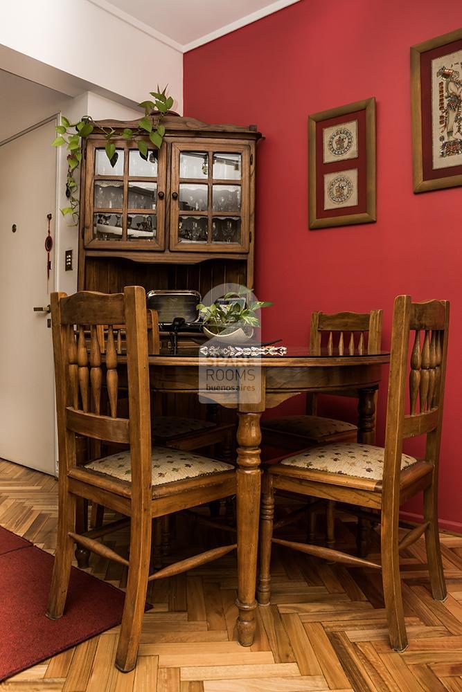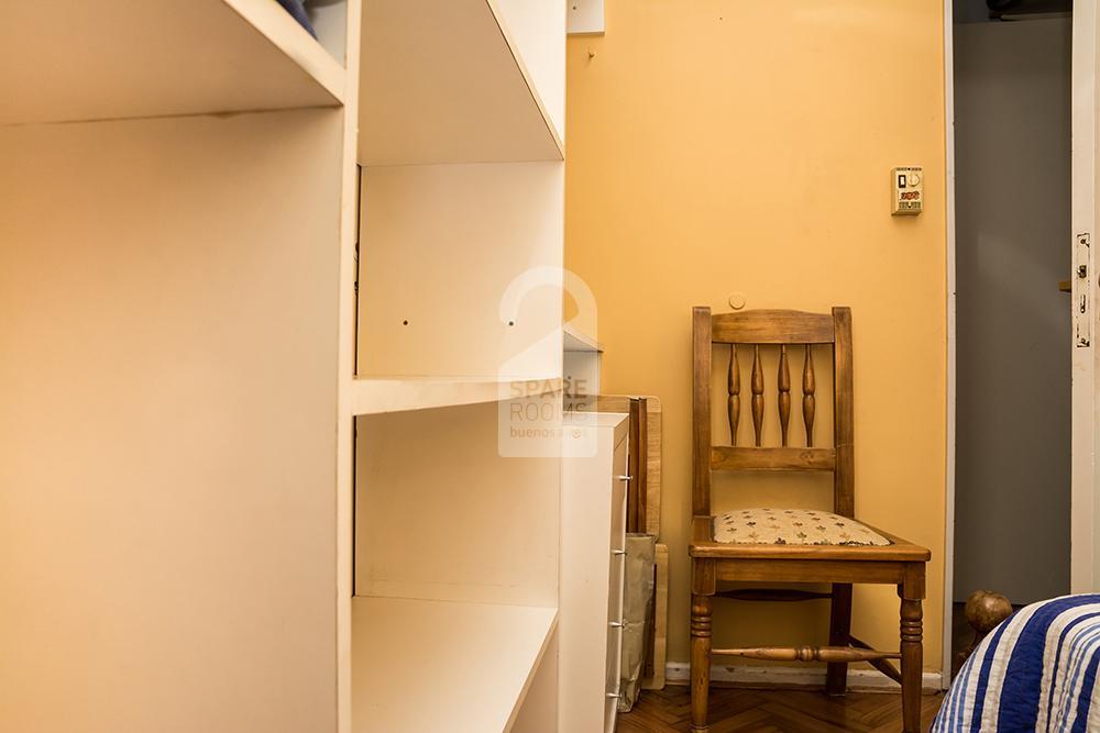 Cálida y simple habitación individual con baño privado para alquilar en un departamento, en el barrio de Anchorena, a tan sólo 2 cuadras de la estación Aguero de subte.