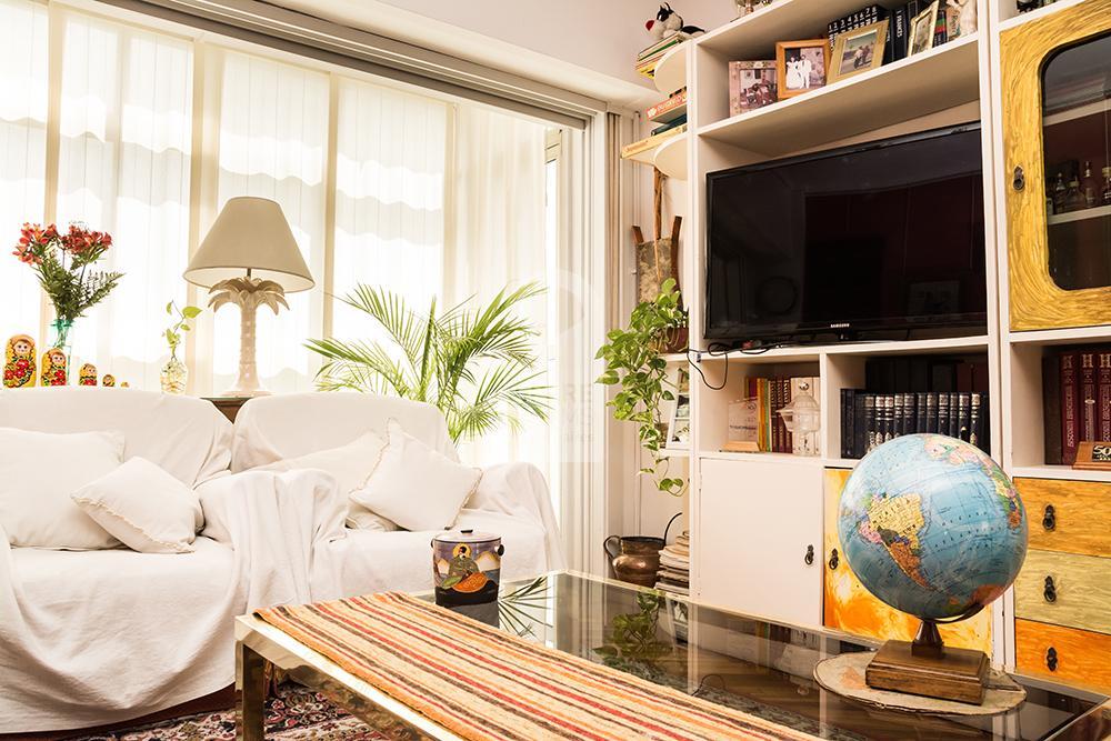 El departamento tiene un living muy luminoso, que cuenta con dos sillones y una mesa pequeña. El comedor tiene una mesa con sus 4 sillas.
