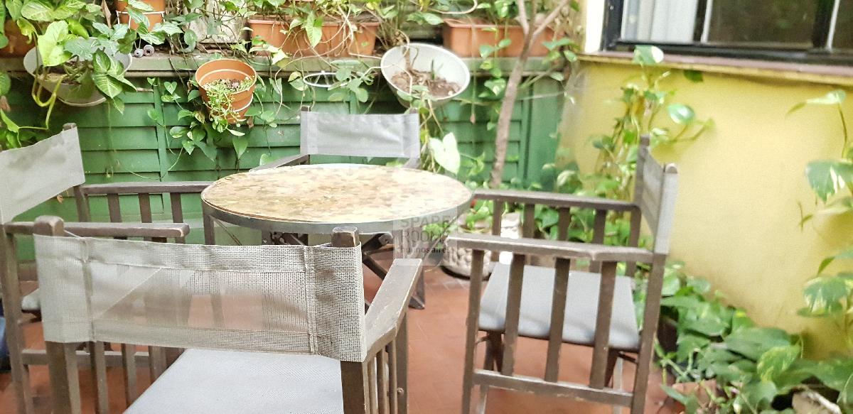 En el patio vas a encontrar una mesa con sillones para poder relajarte y leer algún libro o simplemente tomar aire. Si te gustan las plantas, es ideal, vas a estar rodeado de vegetación de los edificios vecinos.