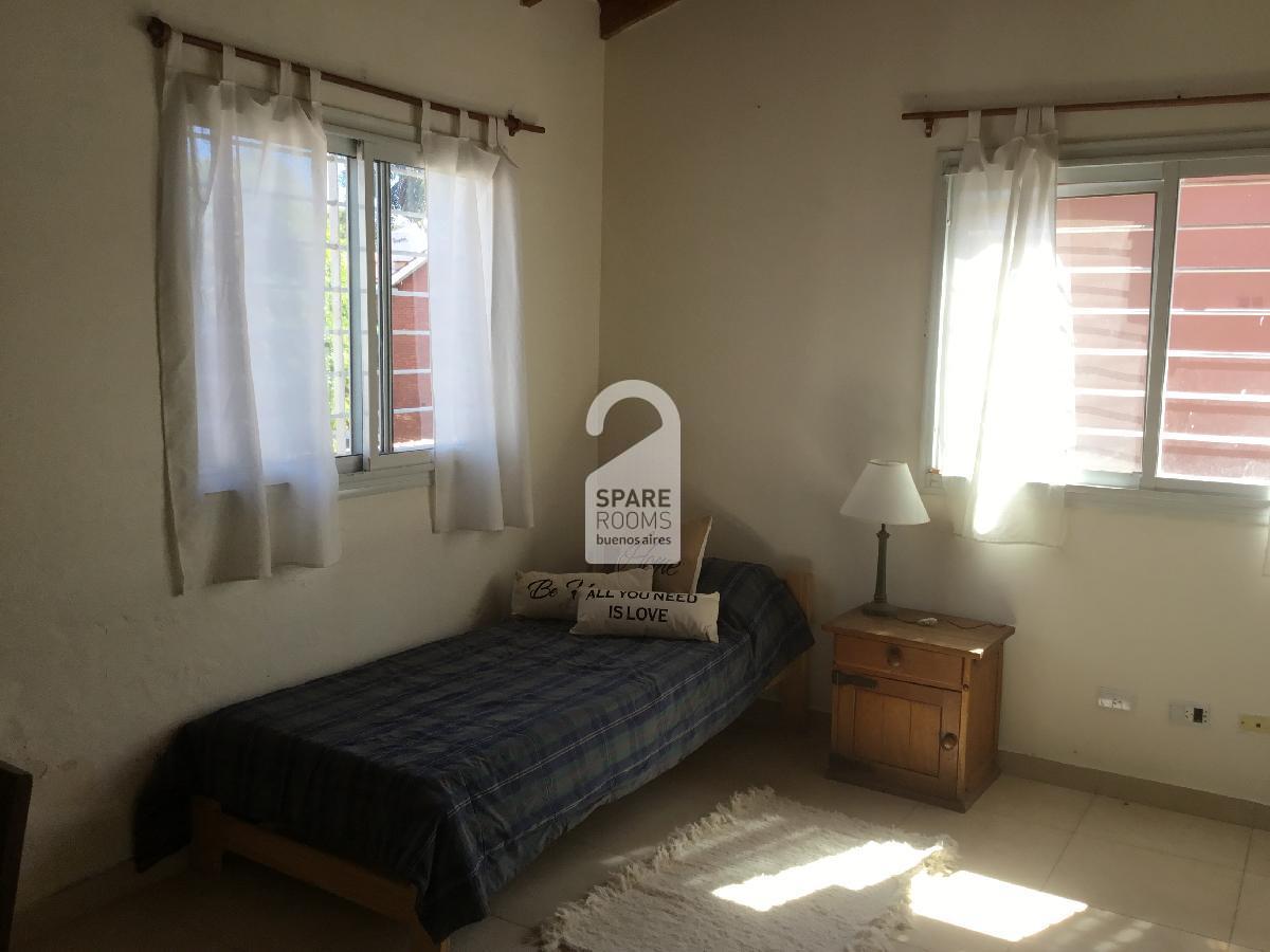La habitación es para una sola persona. Se encuentra en la planta alta de la casa. Cuenta con una cama de una plaza, una mesa de luz con velador, un escritorio y silla para organizar tus cosas de trabajo o estudio y un placard grande con estantes y espacio para colgar toda tu ropa.