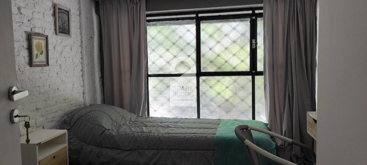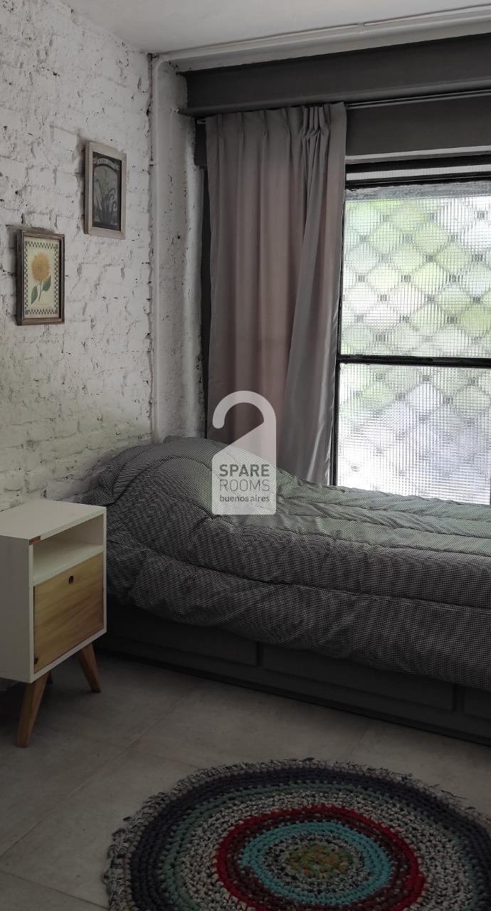 La habitación tiene un ventanal con vista a la calle, lo que te da mucha luz y ventilación.