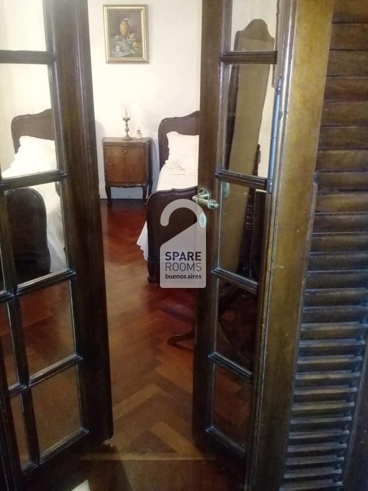 Hermosa habitación con dos camas single para una sola persona estilo francés clásico para alquilar en un departamento, en el 4to piso, en el barrio el Retiro, a tan sólo 4 cuadras de la Plaza San Martin.