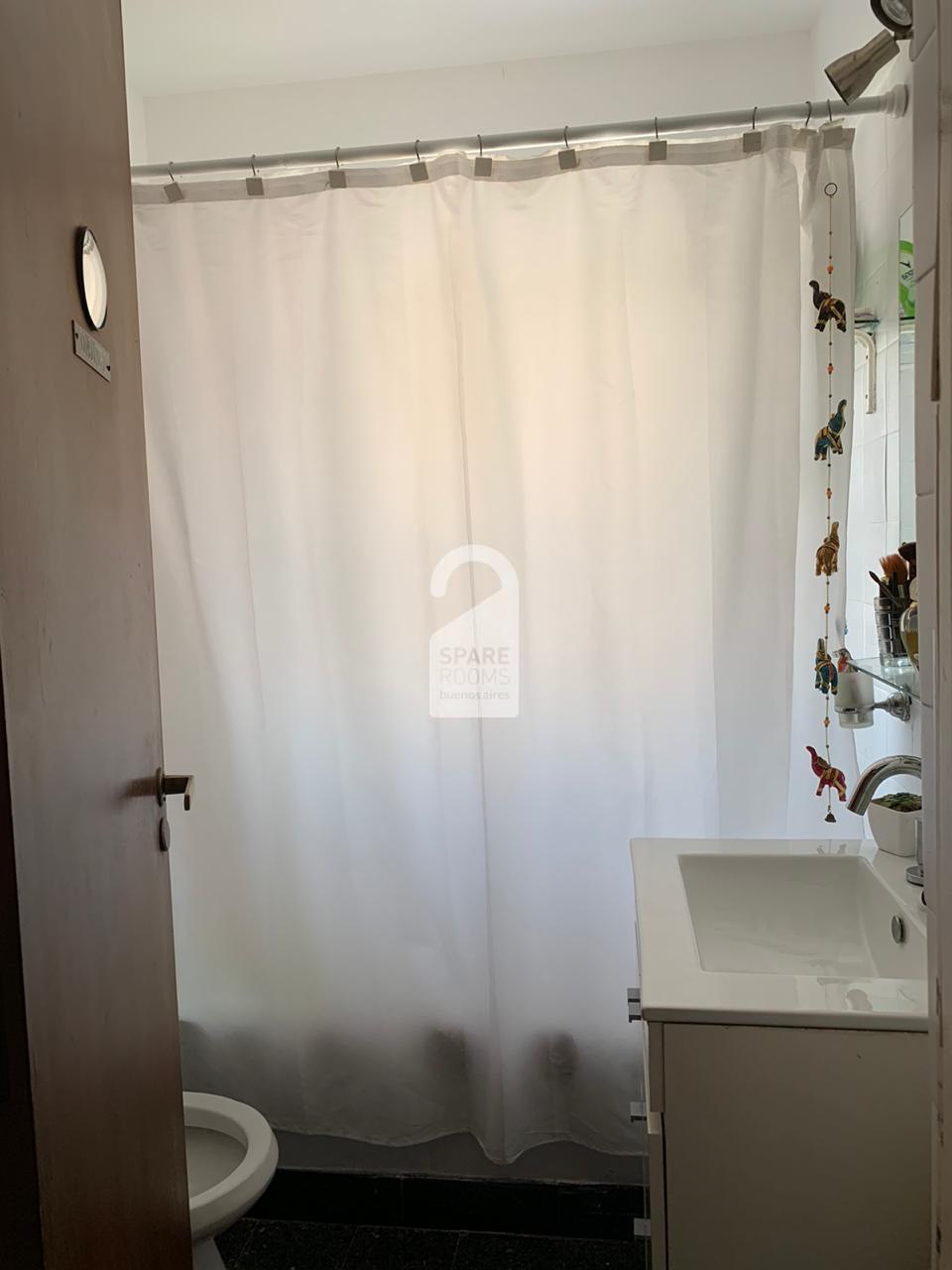 Hay un baño completo con lava manos, W.C., bañadera y ducha para uso compartido con la anfitriona.