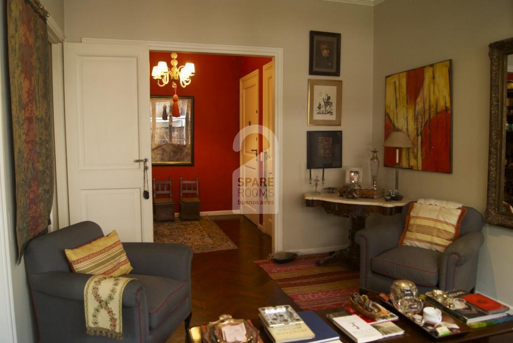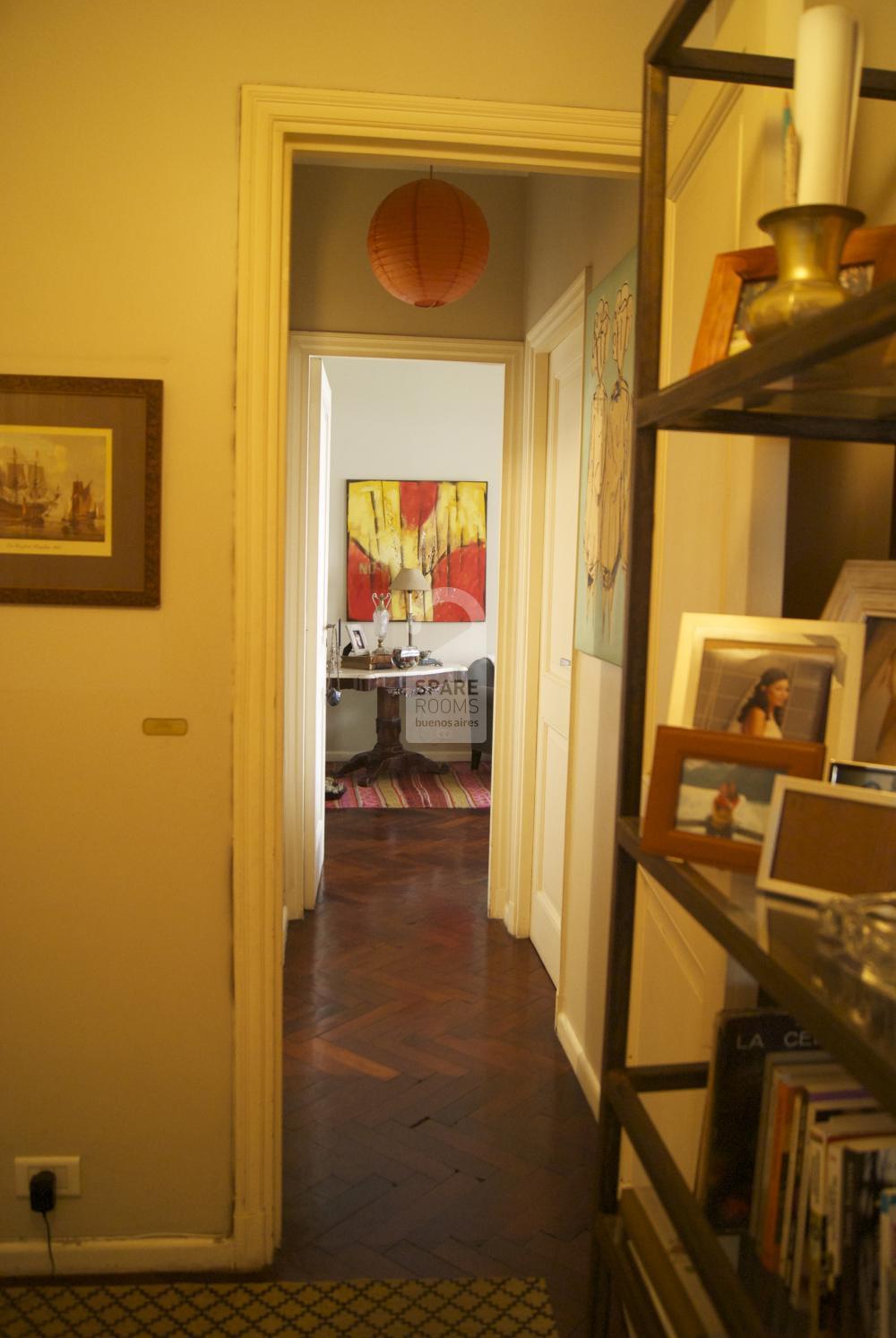 Espaciosa habitación individual para alquilar en el 4to piso de un hermoso departamento en Recoleta, a sólo 2 cuadras de la Estación Pueyrredón, línea D del subte. El baño se comparte con una persona.