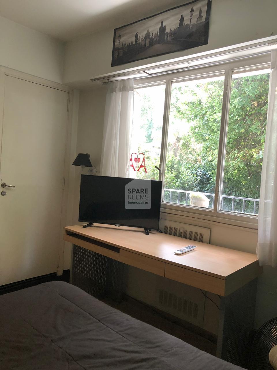 Esta hermosa habitación cuenta con una cama doble para una persona, un gran escritorio, silla, TV, ventilador y calefaccion y cómodo y amplio placard. Tiene vista al jardín con muchísima luz y es sumamente silenciosa, ideal para estudiar o trabajar.