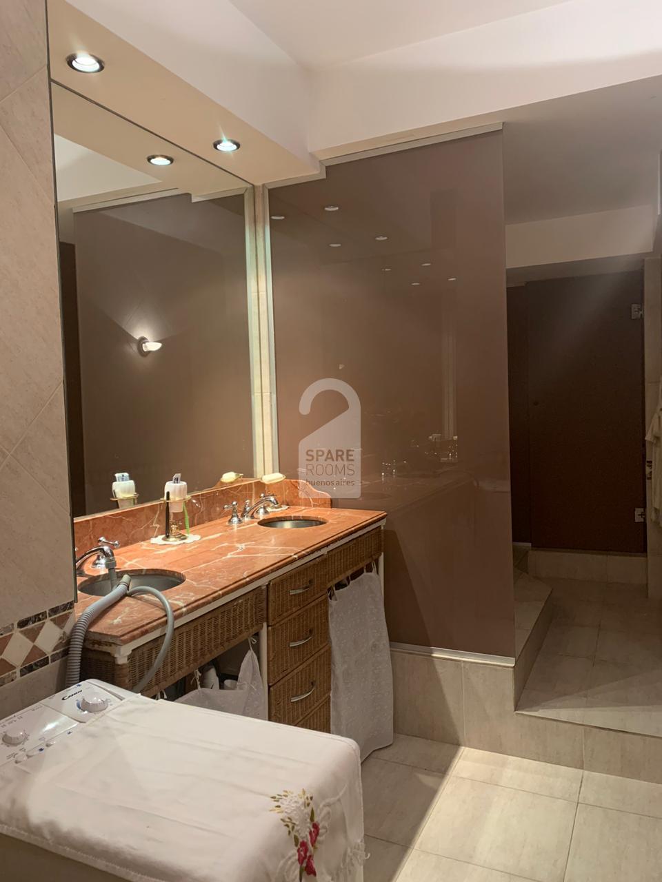 Hay un amplio y cómodo baño a tu disposición para ser compartido con la anfitriona, tiene dos lava manos, W.C., y ducha. (Acordar horarios de uso con la anfitriona ya que es el baño de su habitación).