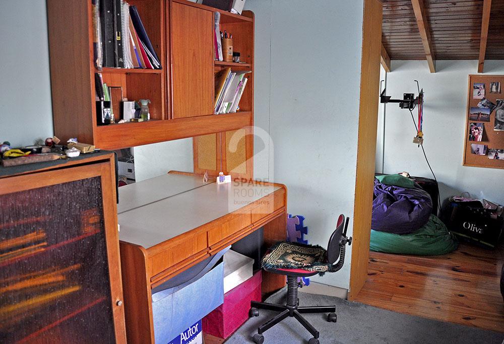 La habitación tiene una cama single, una mesa de luz, un placard amplio y un escritorio ideal para trabajar o estudiar.