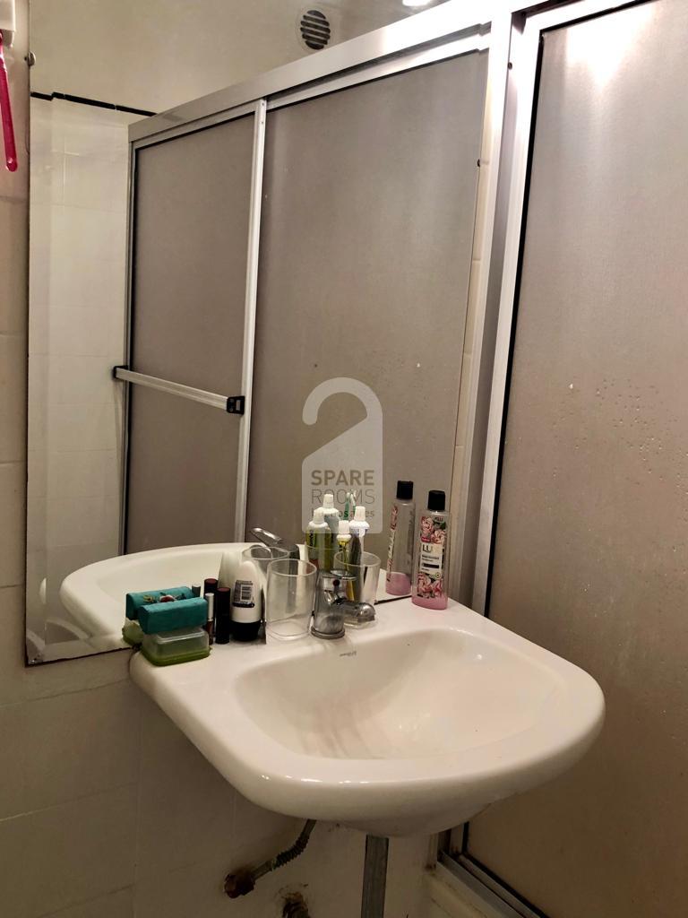El baño compartido está equipado con una ducha (con bañadera), un W.C y un lava manos.