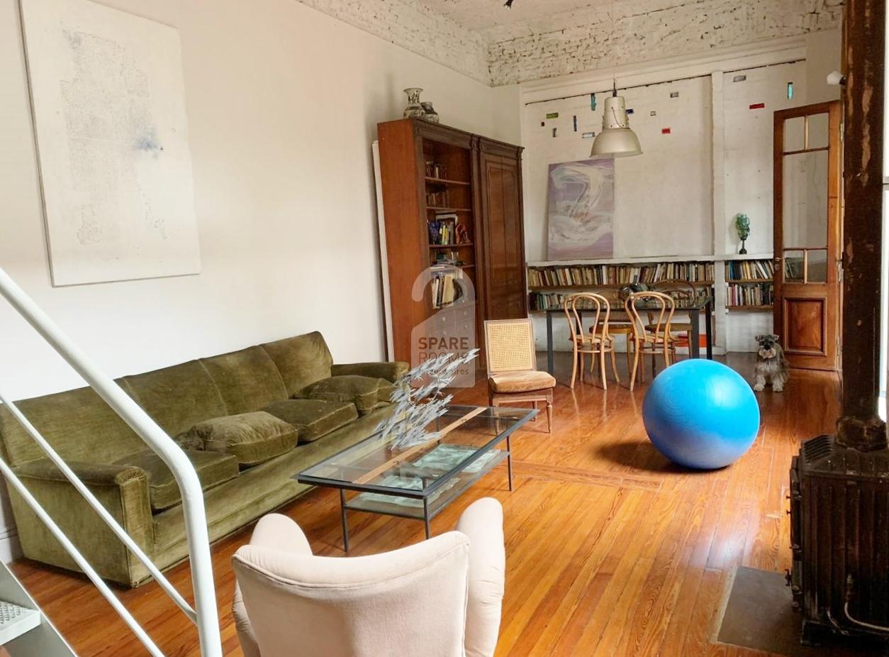 Es una casa antigua de dos pisos con una gran terraza. Tiene techos altos,grandes ventanales y pisos de madera. Es una casa muy luminosa con ambientes amplios y colores claros, muy agradable.
