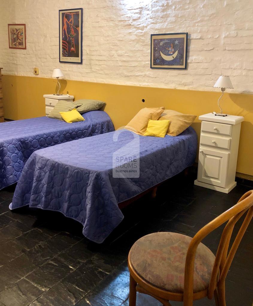 Amplia habitación individual con baño privado y salida al patio para alquilar en una casa con jardín en el dinámico barrio de Palermo Soho, a media cuadra de la famosa Plaza Cortazar y 3 de la Plaza Armenia.