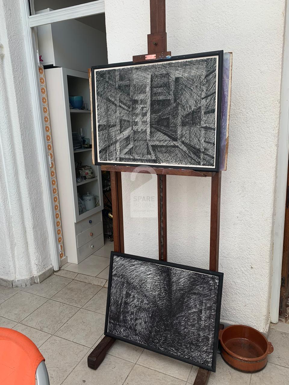 It also has a closet with shelves, drawers, hanging space and a large mirror. There is a library full of books and paintings and space to put your things.