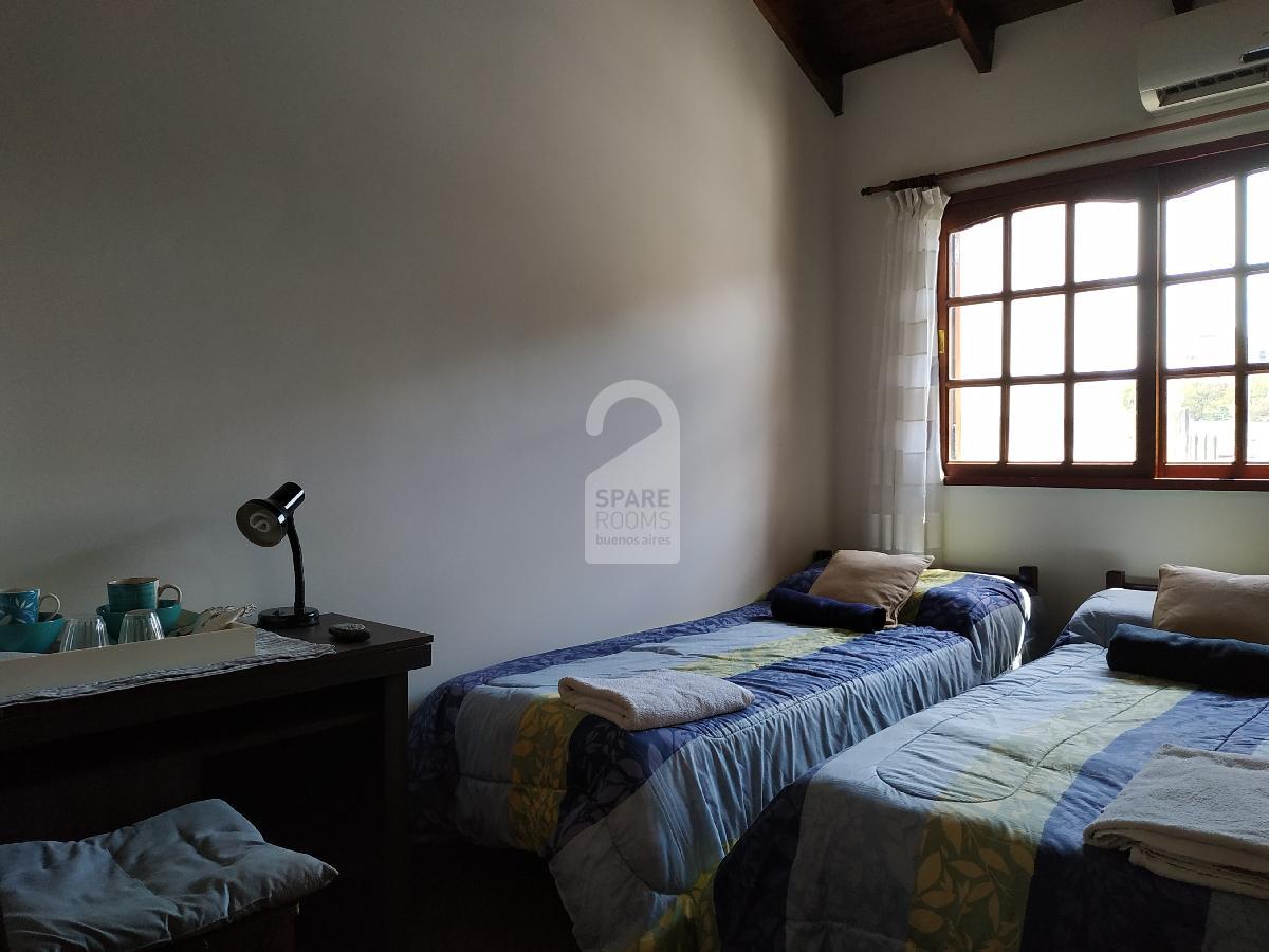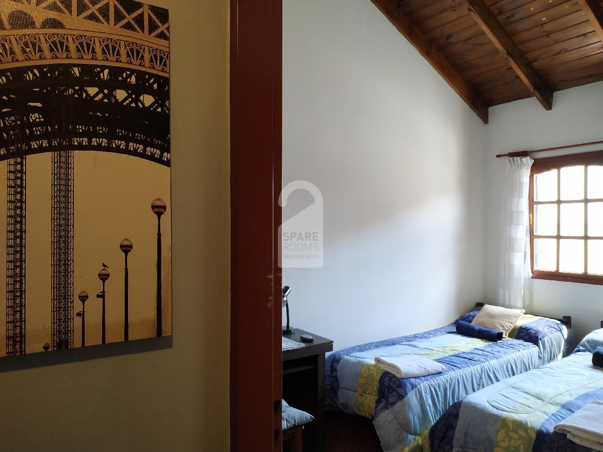 This spacious and charming private bedroom for one person is very comfortable, it has two single beds (but we can take out one), a small desk with a chair and a lamp to study or work. It also has a whole closet with shelves at your disposal and a big mirror.